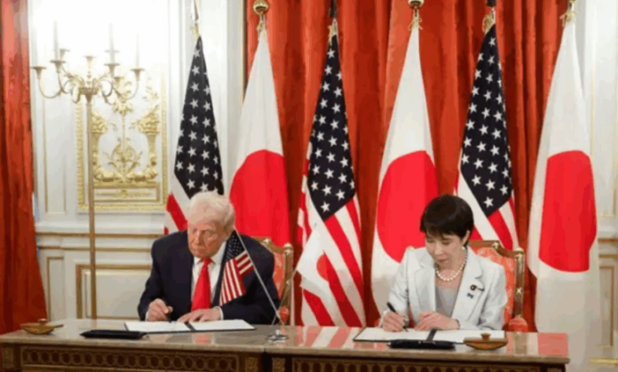 Presidenti i Shteteve të Bashkuara të Amerikës Donald Trump dhe kryeministrja e Japonisë, Sanae Takaichi, nënshkruan një marrëveshje kornizë mbi