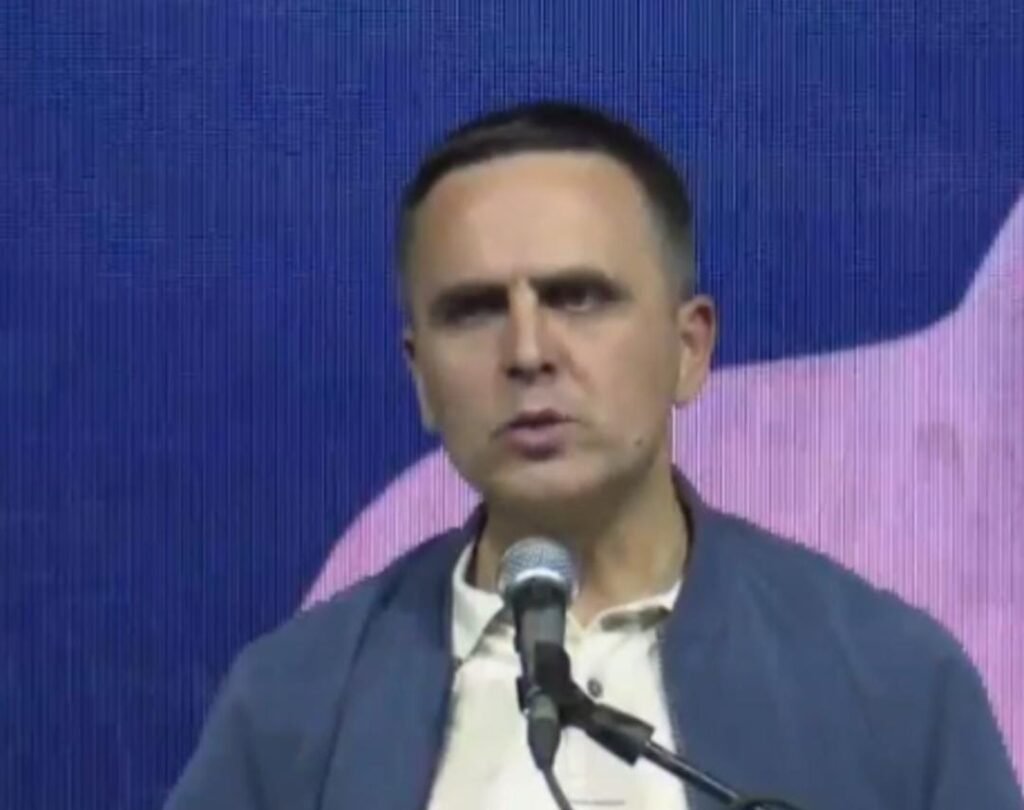Kryetari i Komunës së Tetovës dhe njëri nga liderët e VLEN-it, Bilall Kasami, nga tubimi qendror i VLEN-it në Tearcë