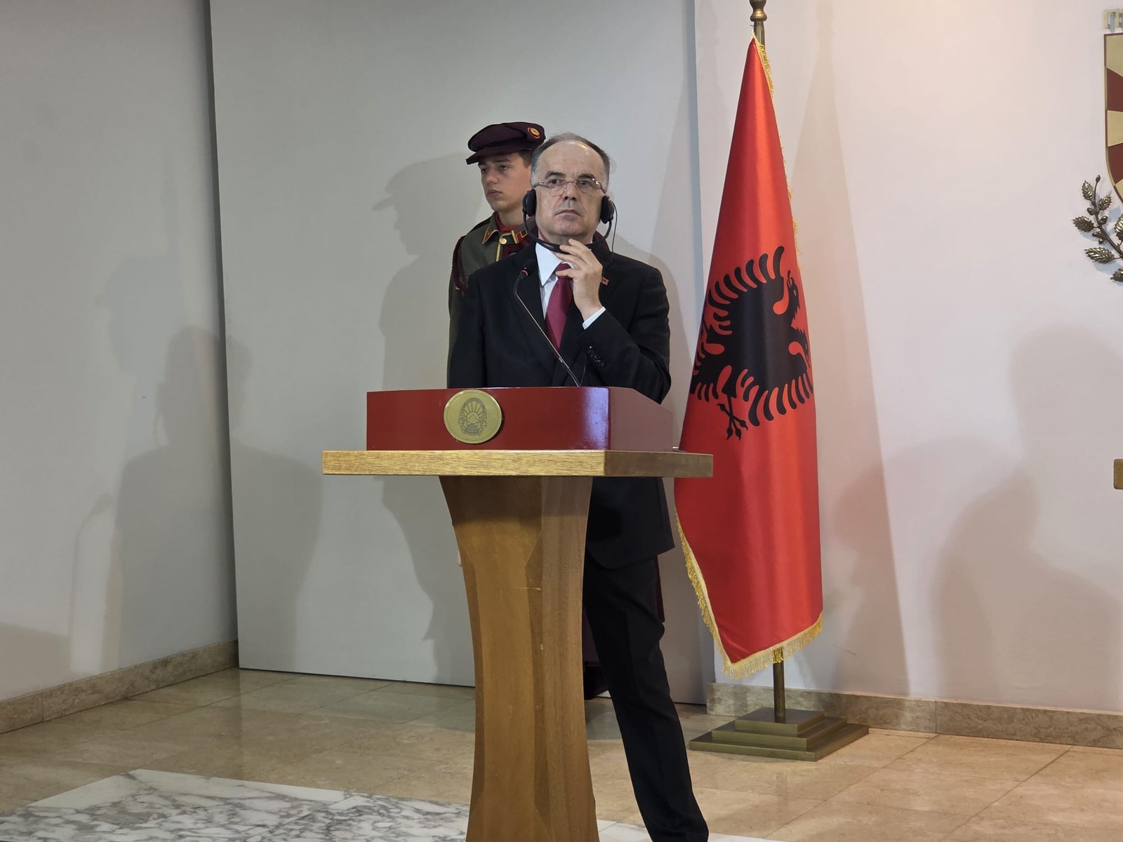Presidenti i Shqipërisë, Bajram Begaj, gjatë konferencës së përbashkët për media me presidenten e Maqedonisë së Veriut, Gordana Siljanovska-Davkova, theksoi
