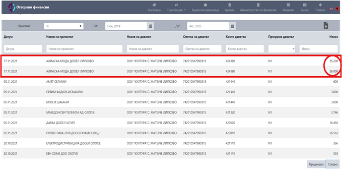 Në vazhdim disa nga tenderët e ndarë nga komuna për kompaninë Aliaska.